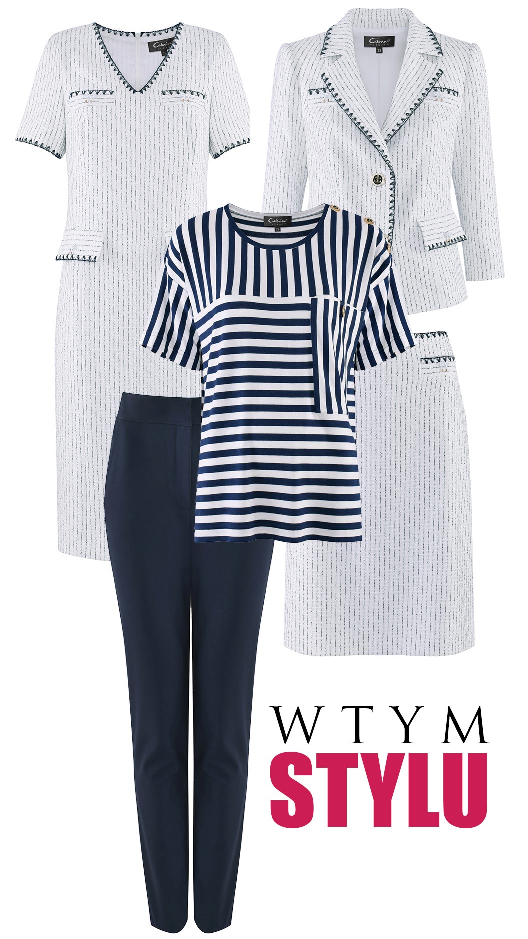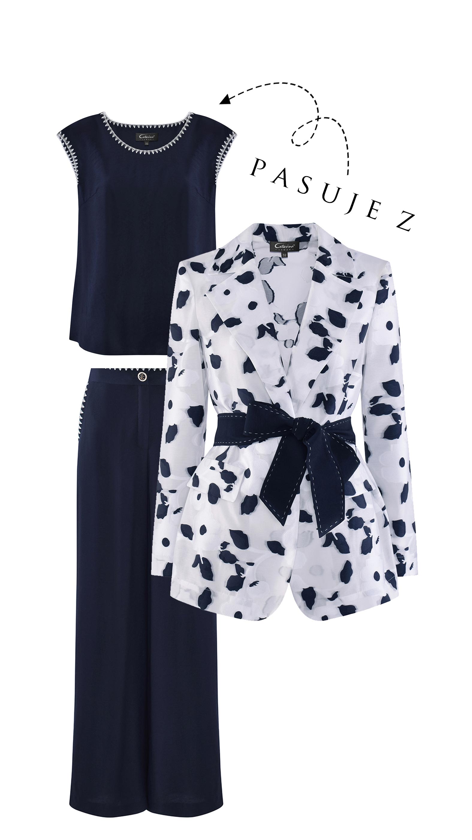 Niezwykle stylowym wyborem do pracy, na spotkanie czy konferencję będzie nasz granatowo-biały kostium w pepitkę, który można nosić także oddzielnie.