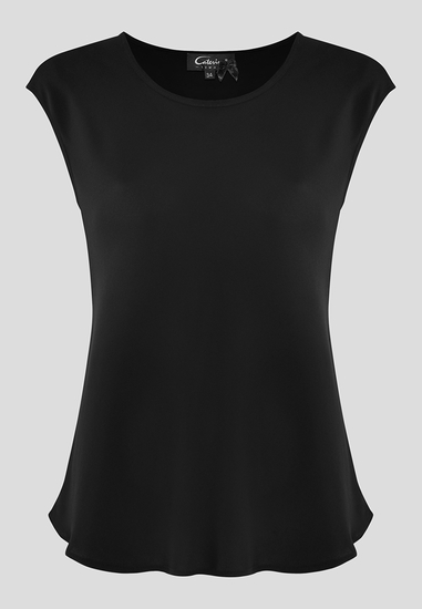 Kobaltowa bluzka z oryginalnym wykończeniem dekoltu