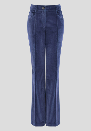Granatowe spodnie z lekko rozszerzanymi nogawkami