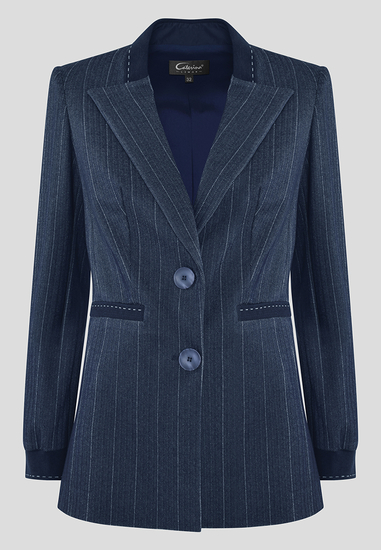 Granatowe spodnie w prążek ze zwężanymi nogawkami