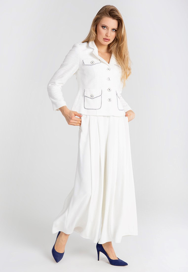 Biały żakiet z kontrastową wypustką