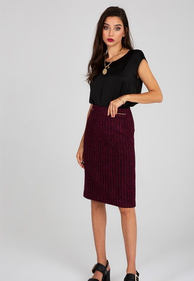 Ołówkowa spódnica w zielono-fuksjową kratę