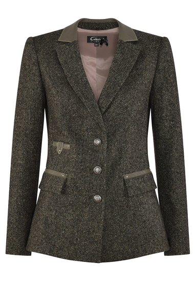 Krótki żakiet z zielonymi lamówkami