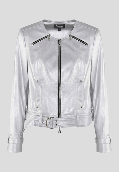 Srebrny żakiet typu ramoneska