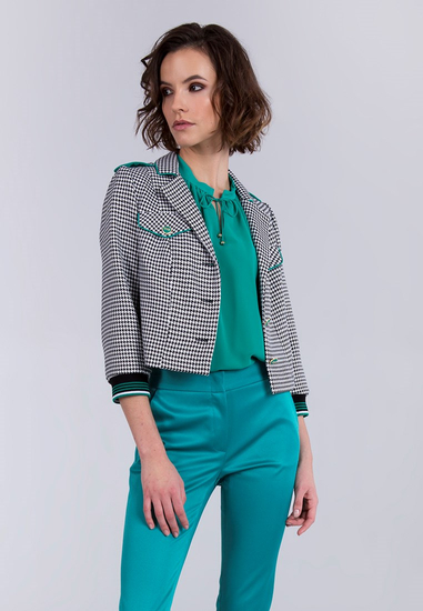 Krótki żakiet z zielonymi lamówkami