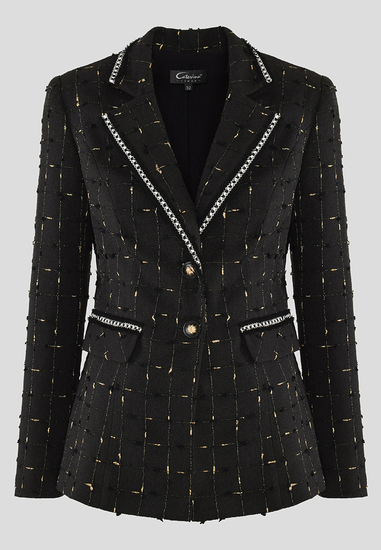 Detale i materiały: Żakiety chanelki w kolekcji Caterina wyróżniają się starannym wykonaniem i luksusowymi materiałami. Użycie boucle, tweedu czy innych teksturowanych tkanin nadaje im charakterystycznego stylu, który łączy klasykę z nowoczesnymi elementami.