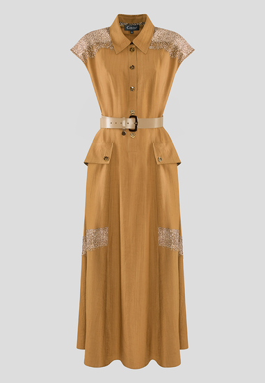 ( ilość produktów: 868 )Beżowa sukienka z koronkowymi wstawkami
