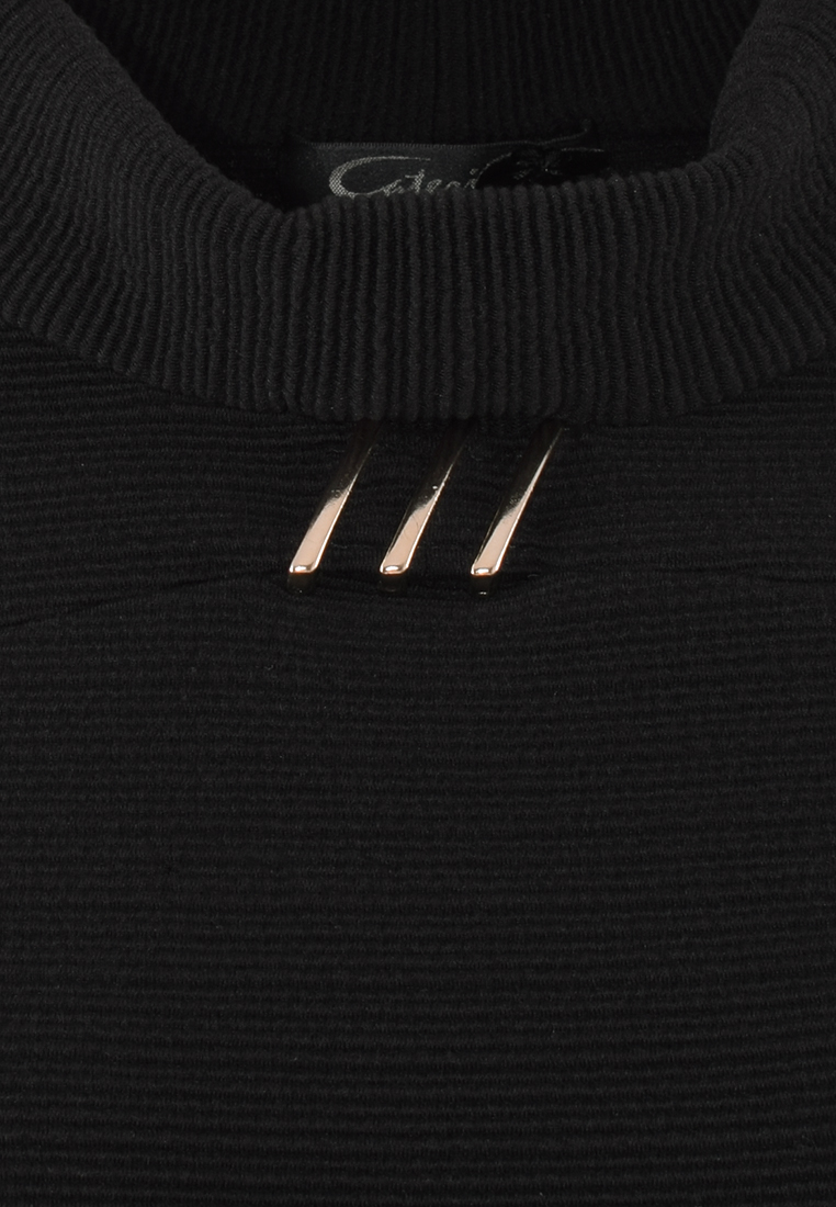 Dekolt wykończony małą stójką. Przy dekolcie oryginalna ozdoba.