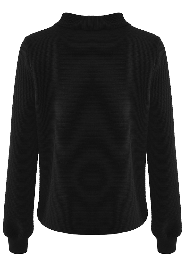 Czarna bluzka o swobodnym kroju. Forma pudełkowa. Tkanina miękka, komfortowa.