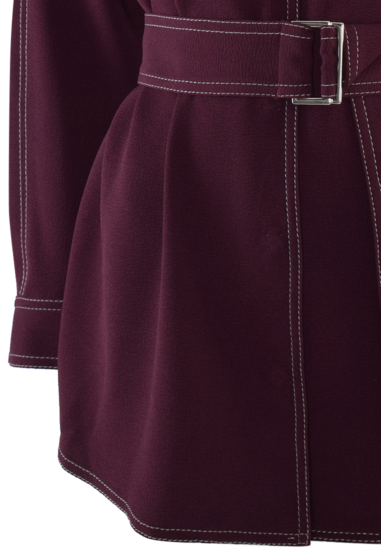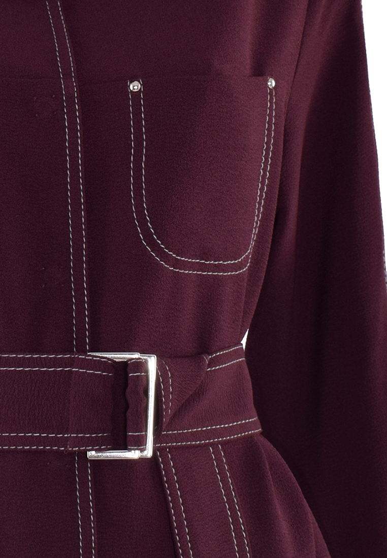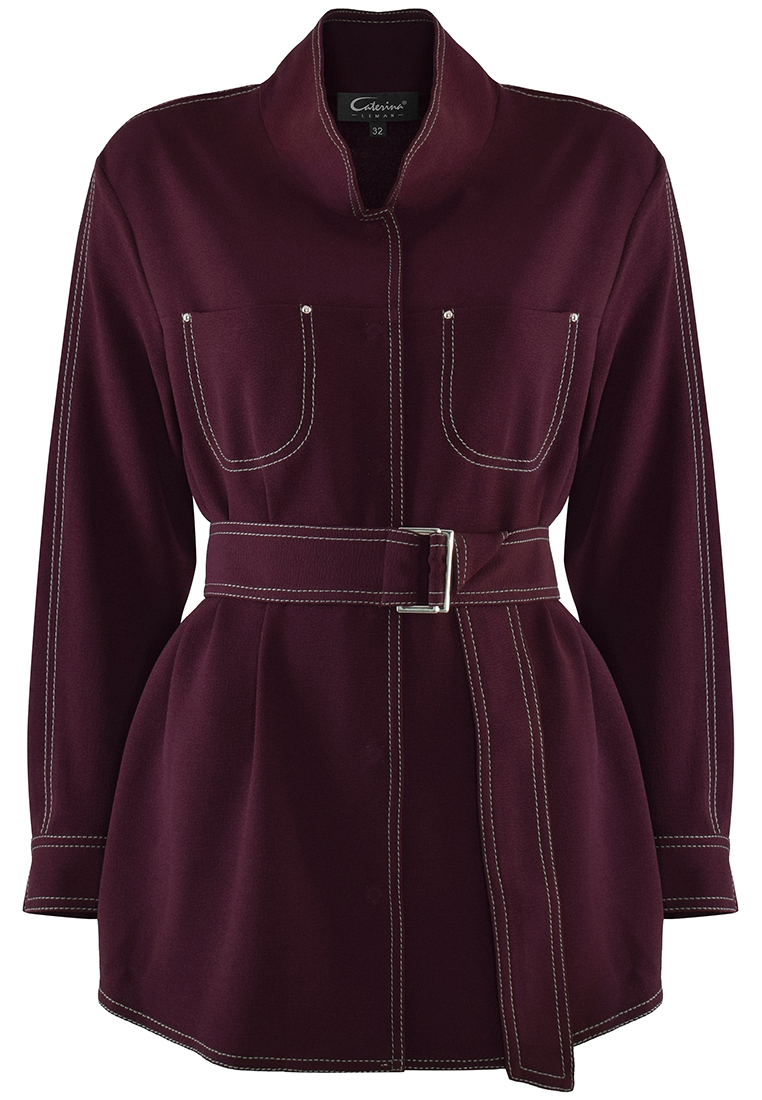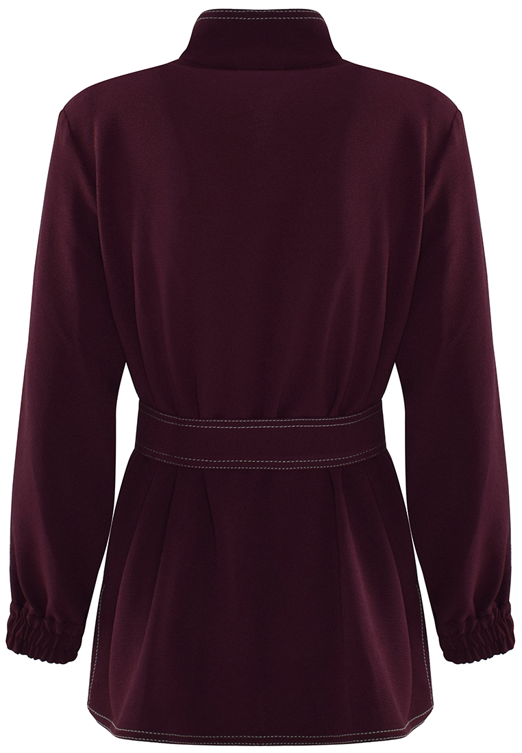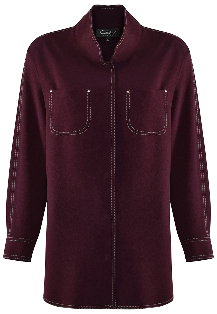 Bordowa koszula o swobodnym kroju. Przy dekolcie zaokrąglona stójka.