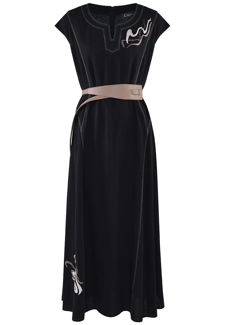 Czarna sukienka wykonana z naturalnej tkaniny, która jest miękka w chwycie i bardzo przyjemna dla ciała.