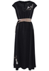Góra sukienki ozdobiona drukiem spowitym złotą posypką.