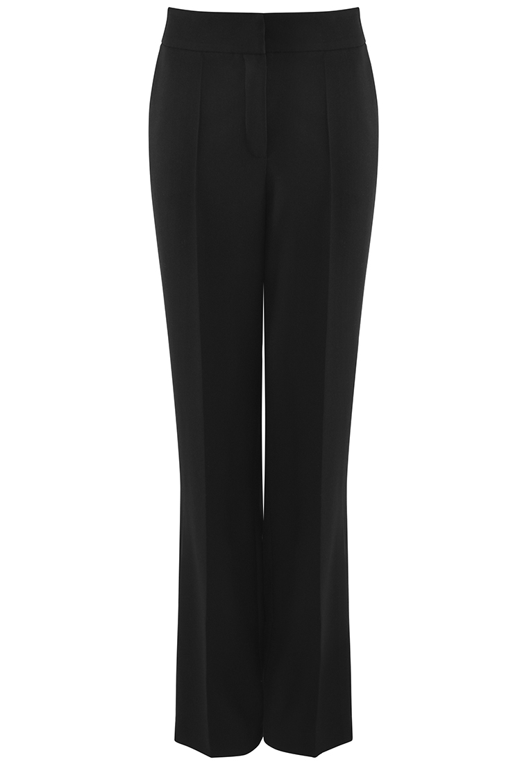 Czarne spodnie z kantem. Forma nogawki lekko zwężana.