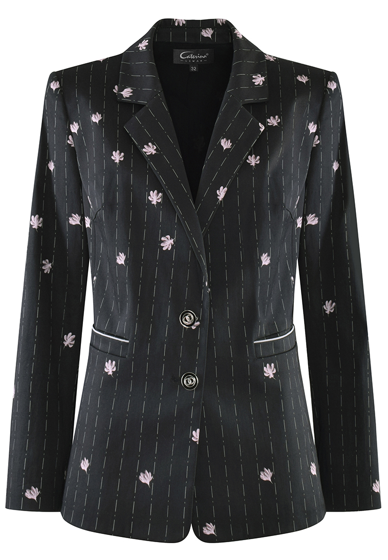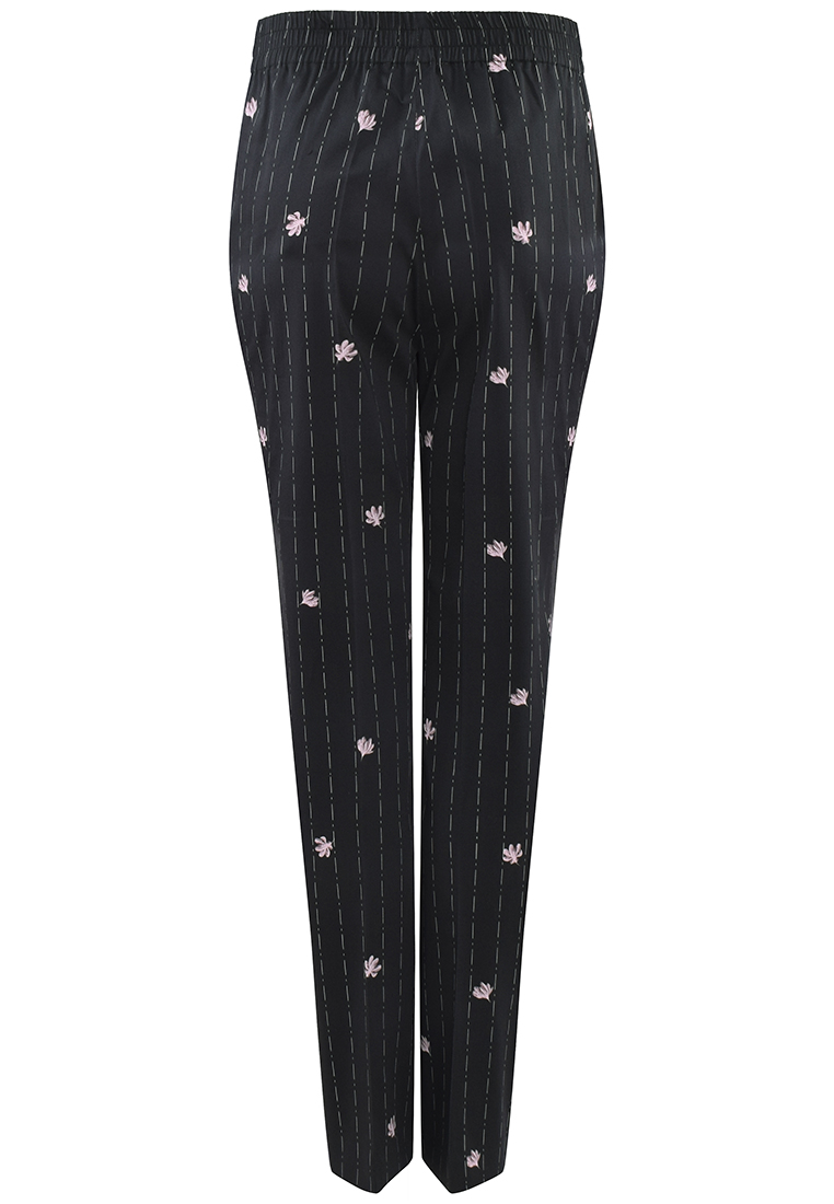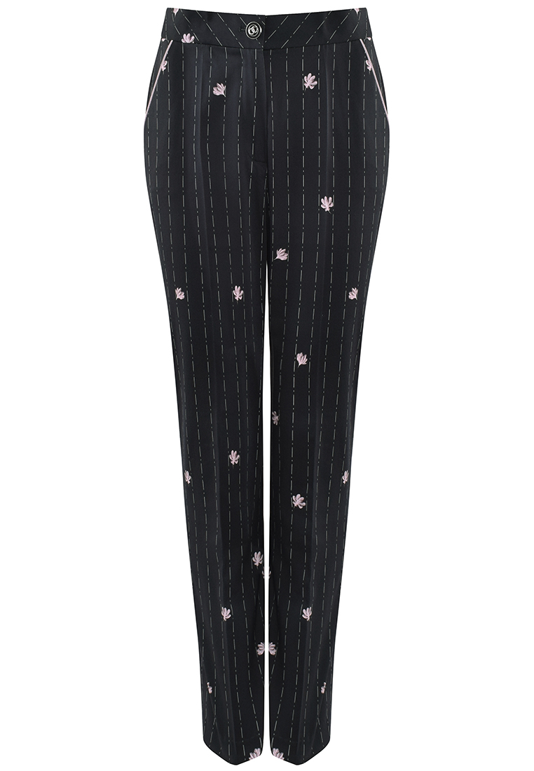 Spodnie do garnituru z motywem kwiatków. Forma nogawek lekko zwężana.
