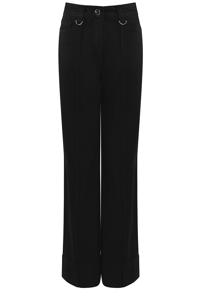 Czarne spodnie z szerokimi nogawkami. Tkanina typu jeans.