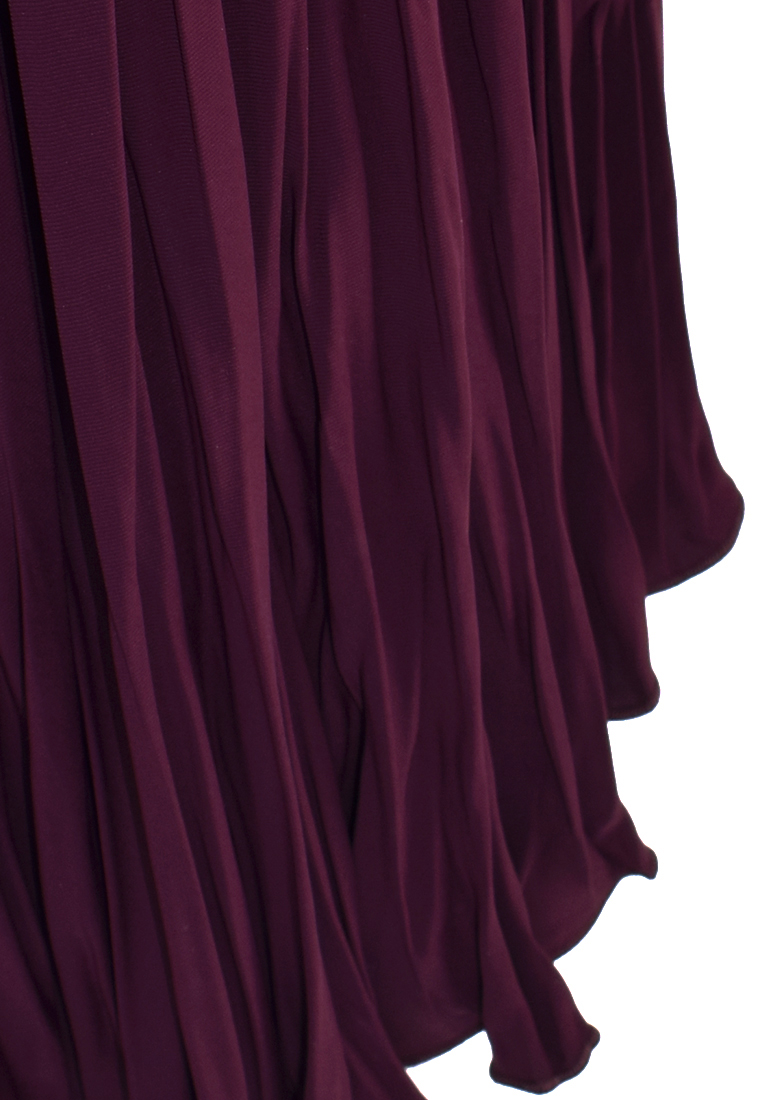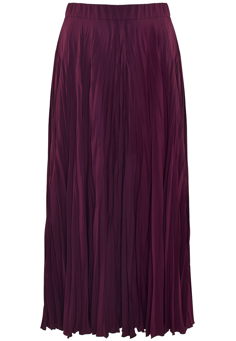 Fioletowa spódnica z kreszowanej tkaniny. Forma z koła, szeroka, pięknie pracująca przy poruszaniu.