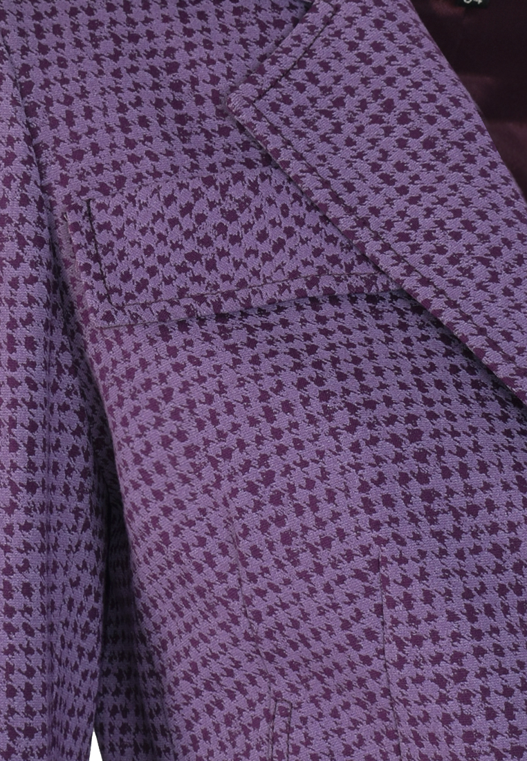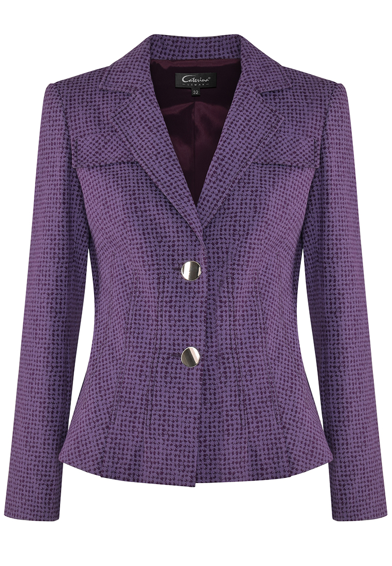 Fioletowy żakiet z motywem kurzej stopki.