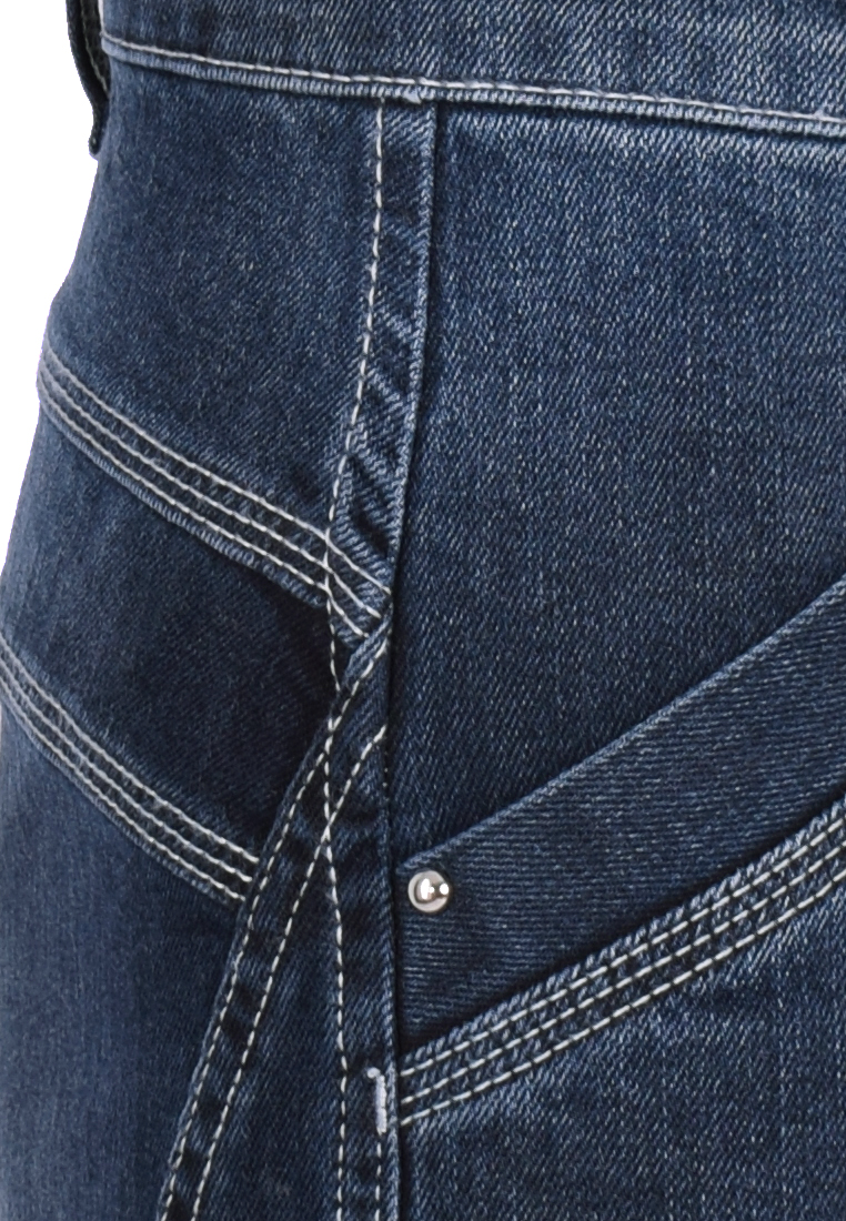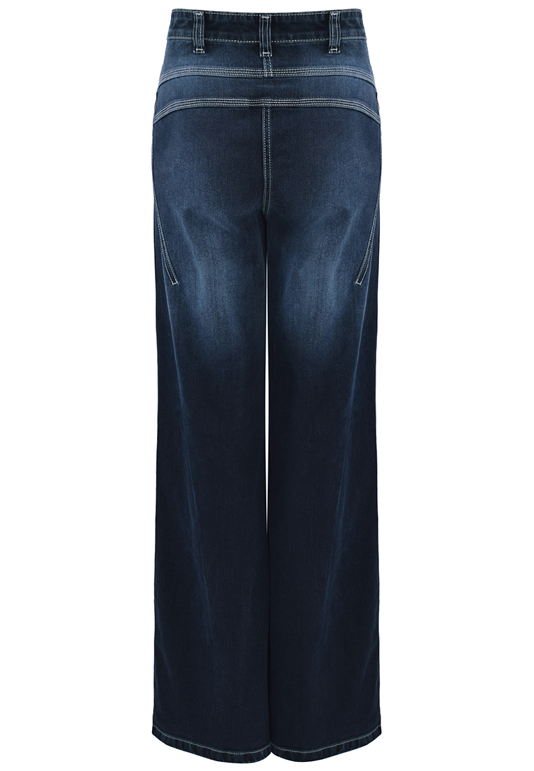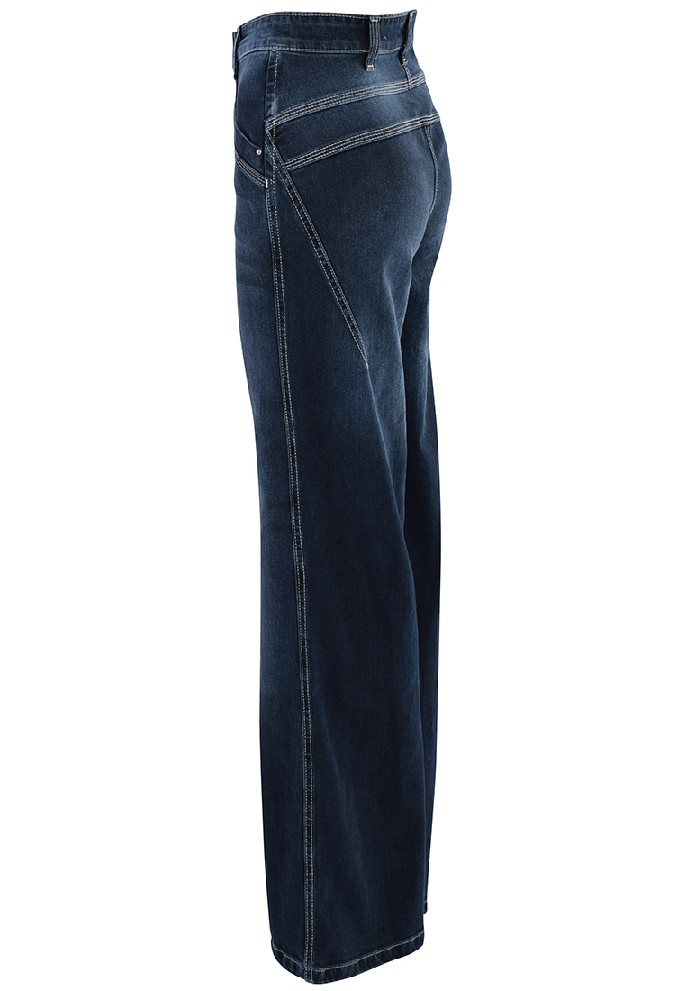 Granatowe jeansy z szerokimi nogawkami. Tkanina bawełniana z małą zawartością elastanu.