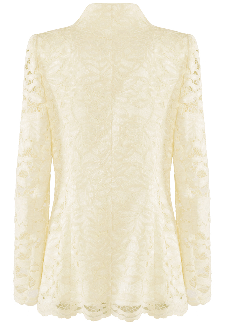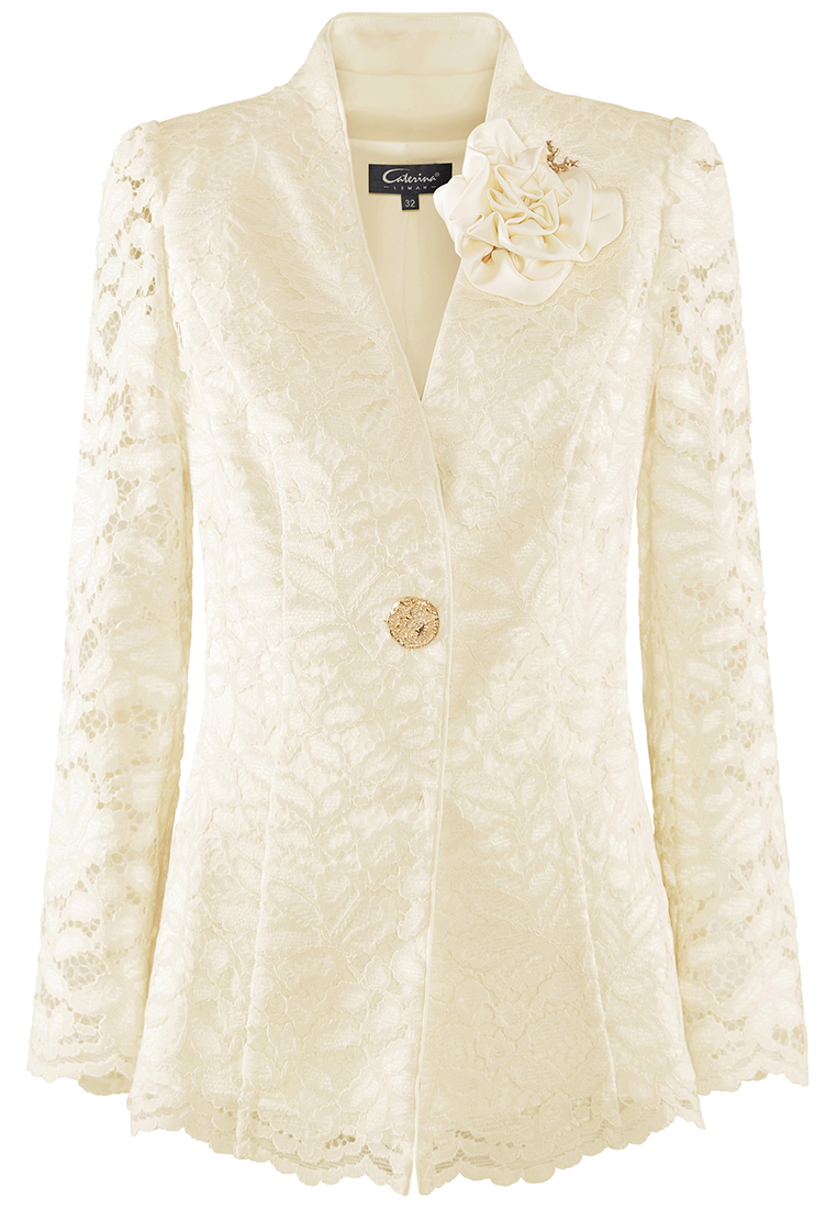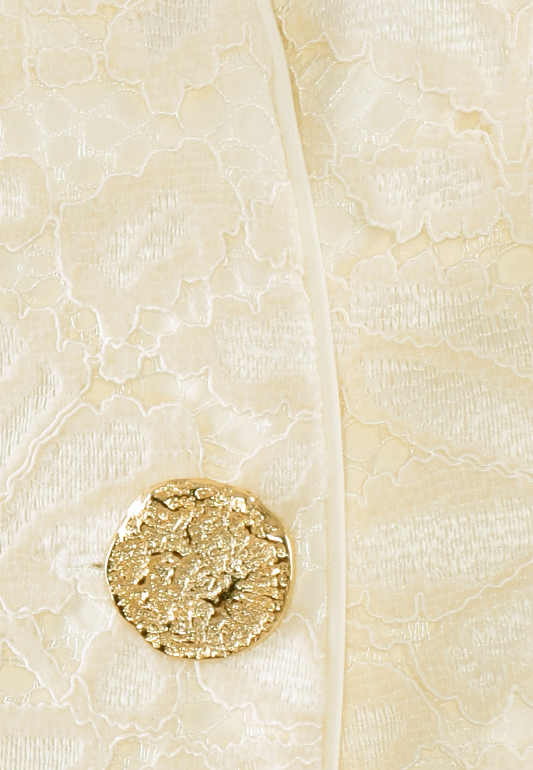 Dekolt w szpic. Zapięcie na jeden guzik.