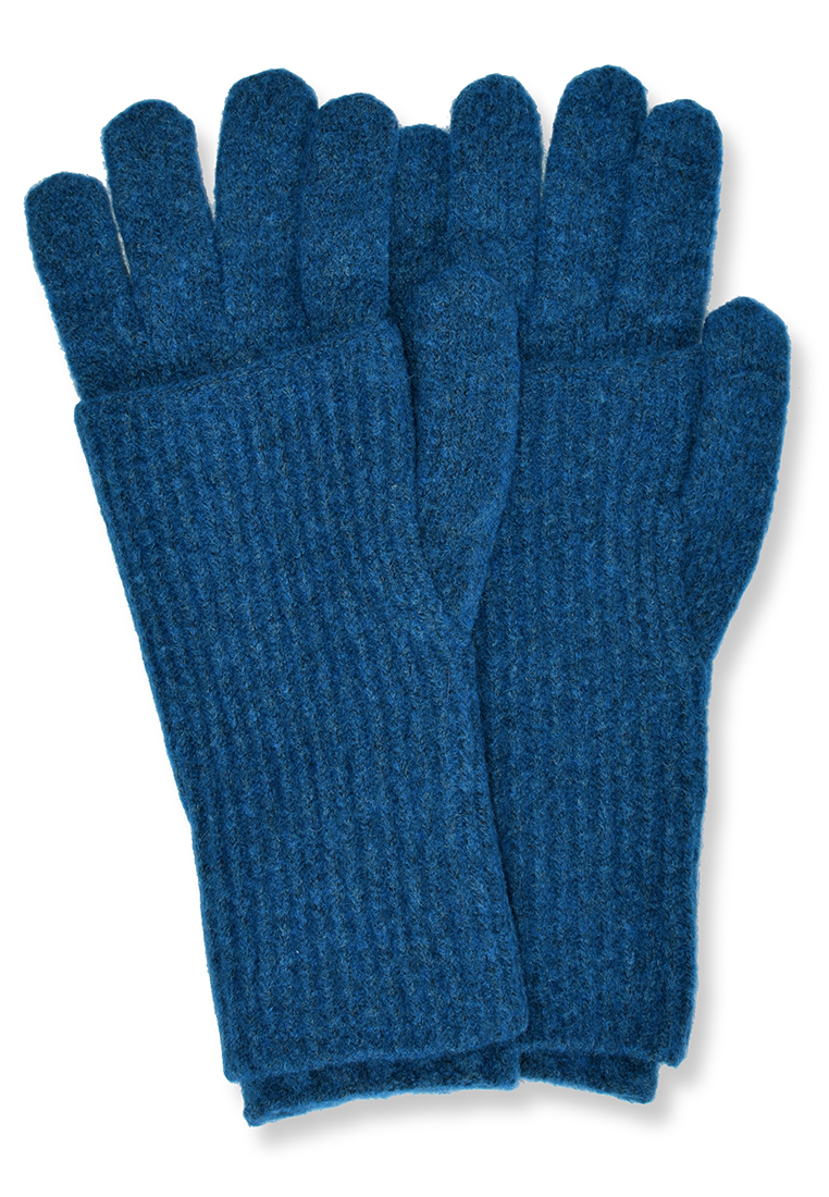 Niebieskie rękawiczki z domieszką wełny. Ciepłe, komfortowe w noszeniu.