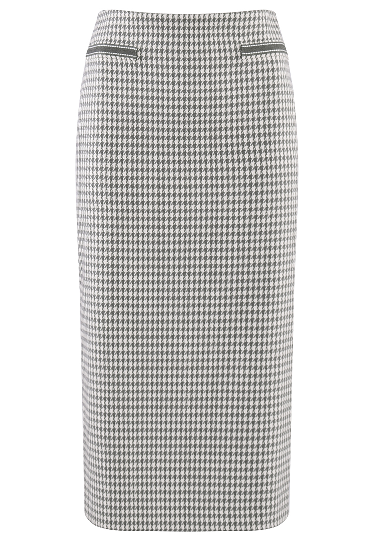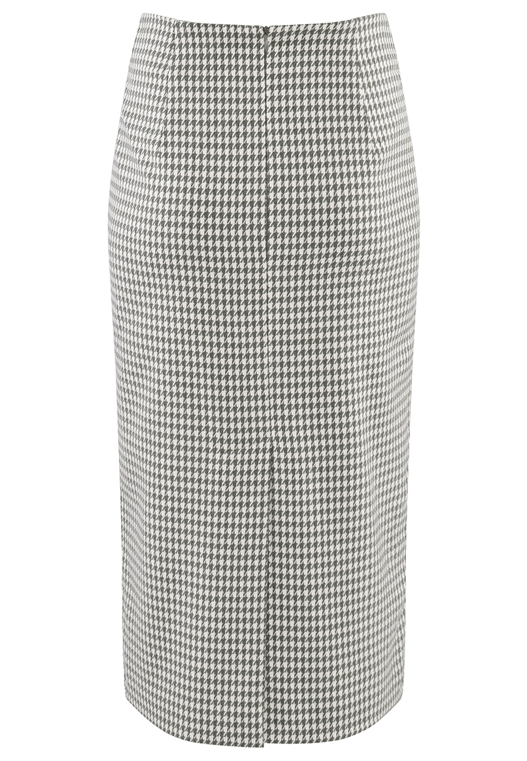 Klasyczna spódnica ołówkowa, z tkaniny z drobną "kurzą stopkę".