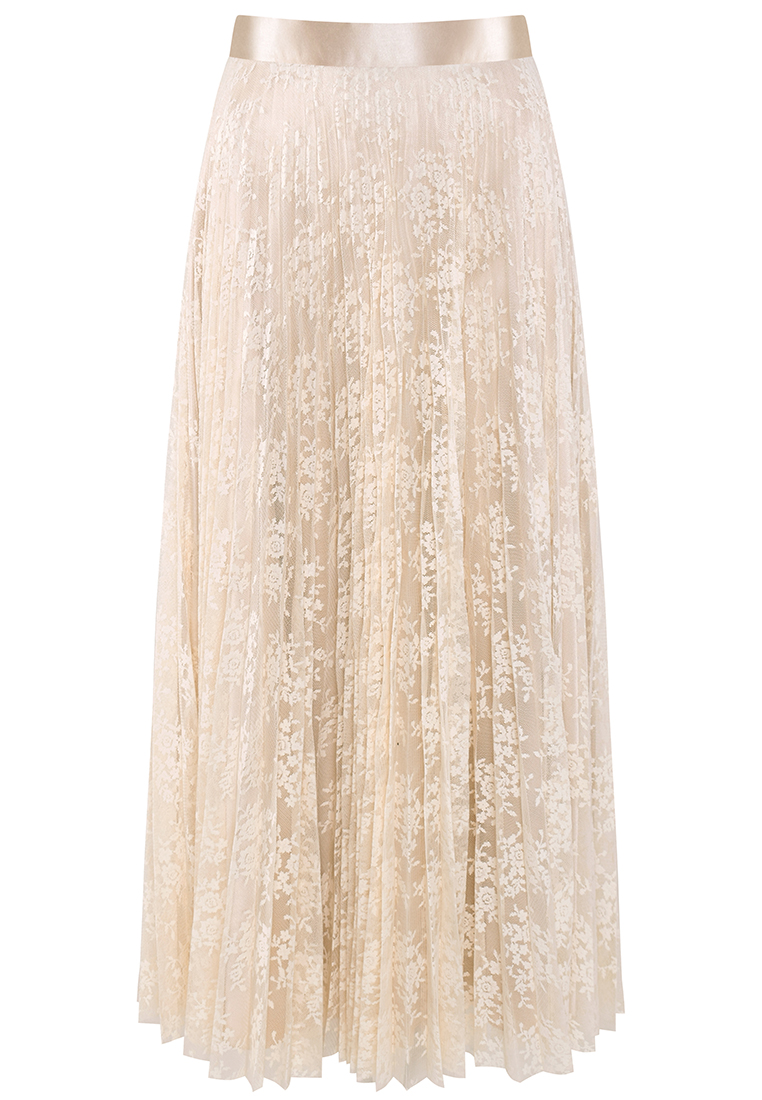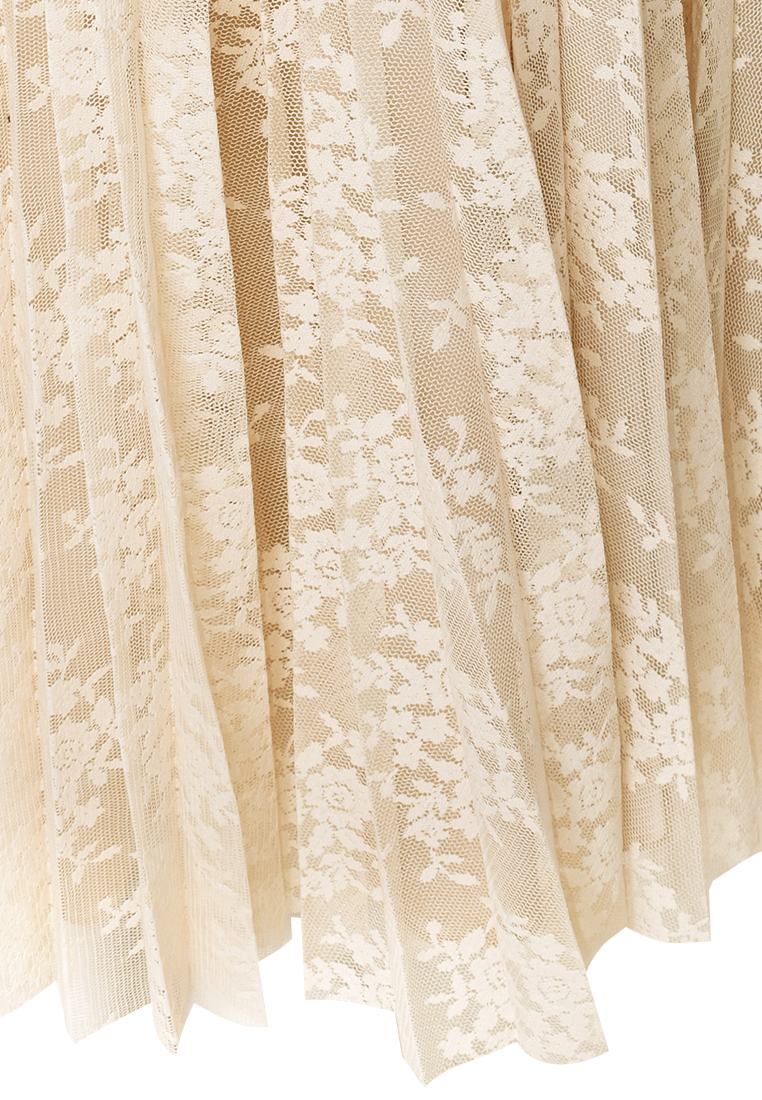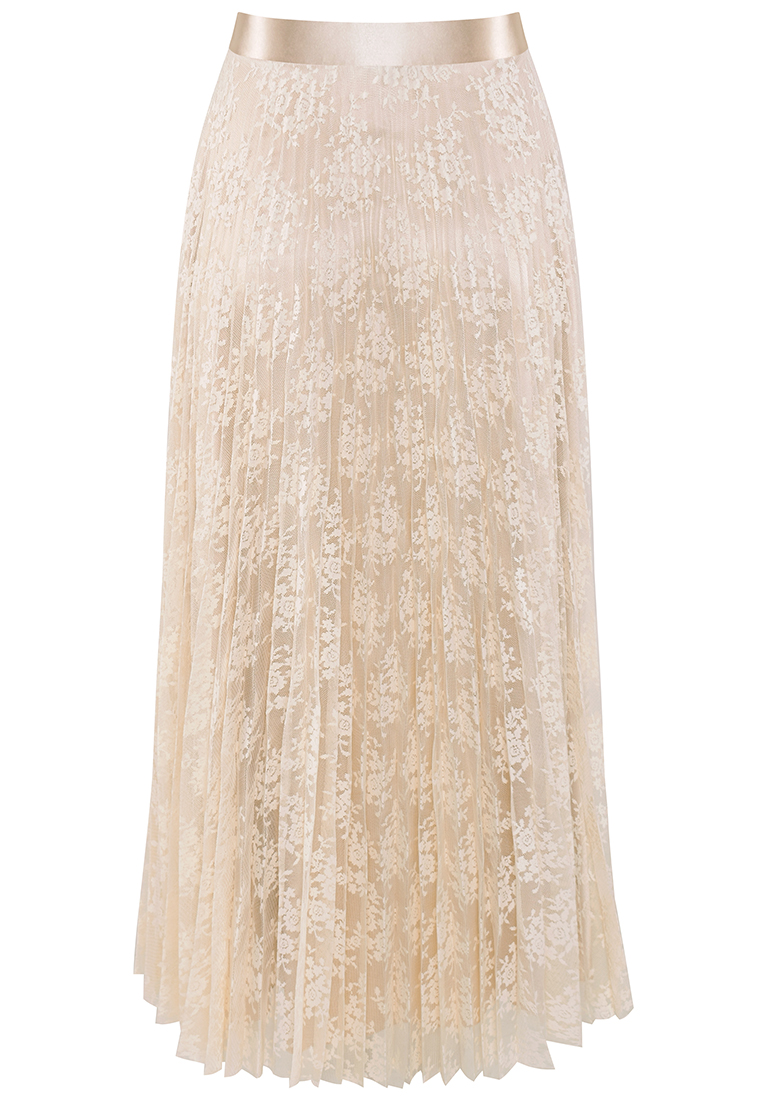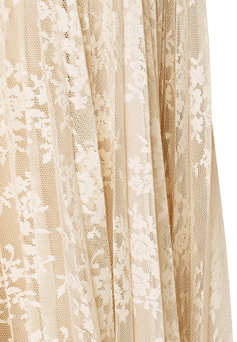 Plisowana spódnica w kolorze beżowym. Tkanina koronkowa, transparentna.