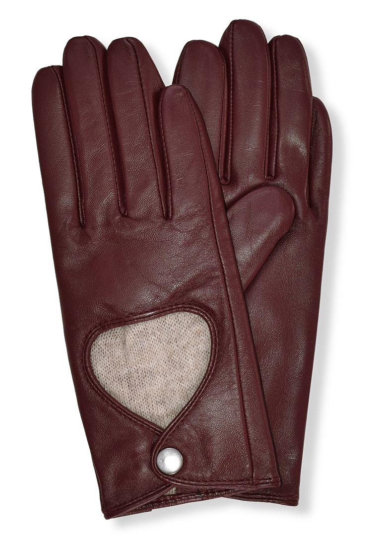 Bordowe rękawiczki ze skóry. Wykończenie wełniane.