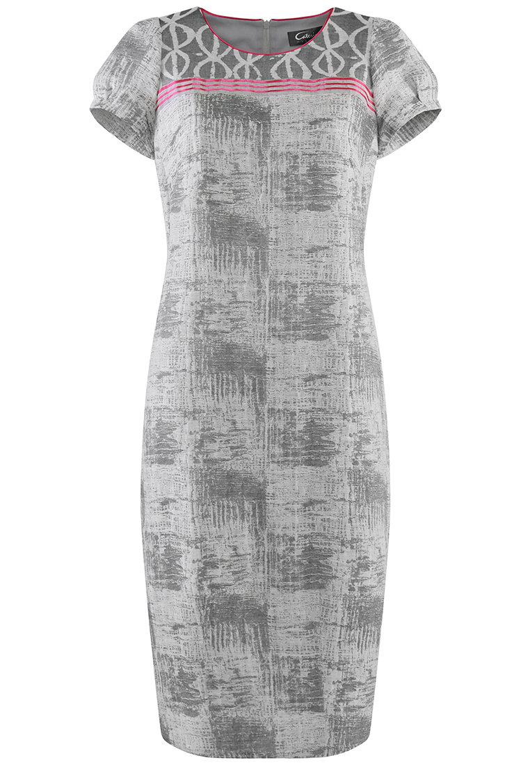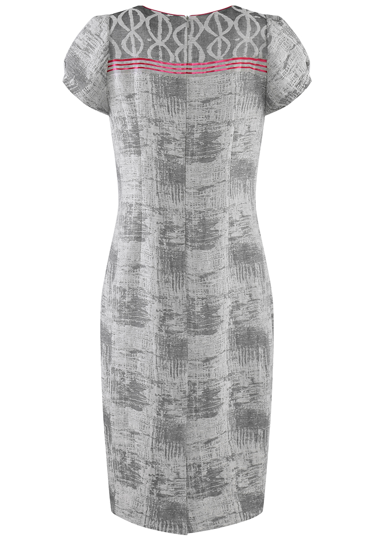 Szara sukienka z naturalnej przędzy. Forma delikatnej bombki, swobodna, luźna.