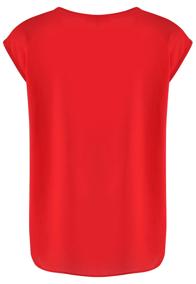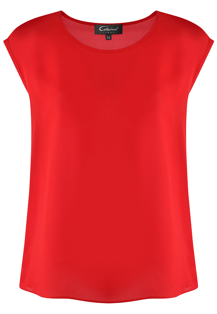 Czerwona bluzka o swobodnym, prostym kroju. Ramię opadające, lekko wydłużone.