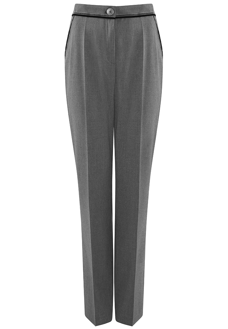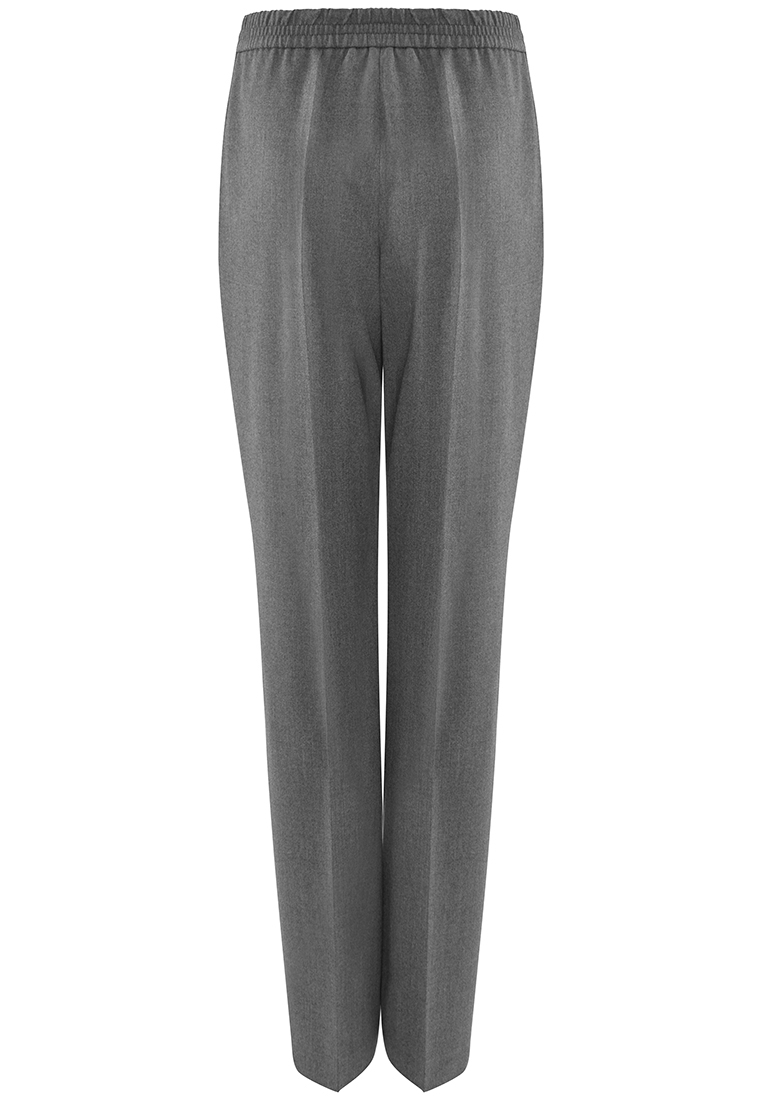 Szare spodnie o klasycznej formie. Nogawki szerokie, proste.
