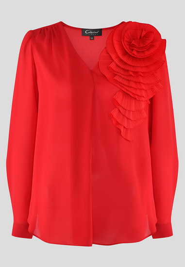 Czerwona bluzka z przestrzennym kwiatem